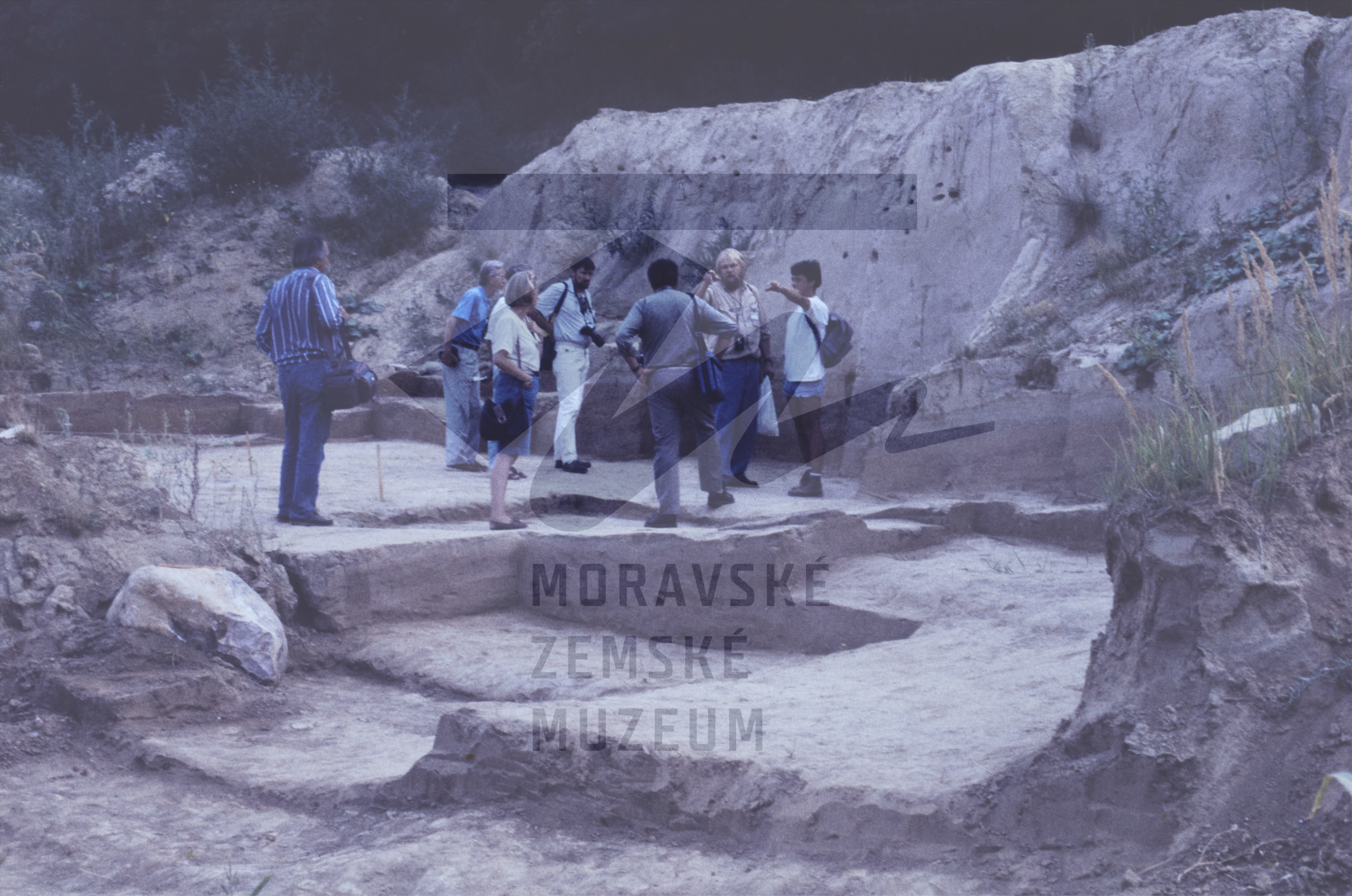 Návštěva na výzkumu. M. Oliva čelem ve světlé košili, s fotoaparátem na krku.