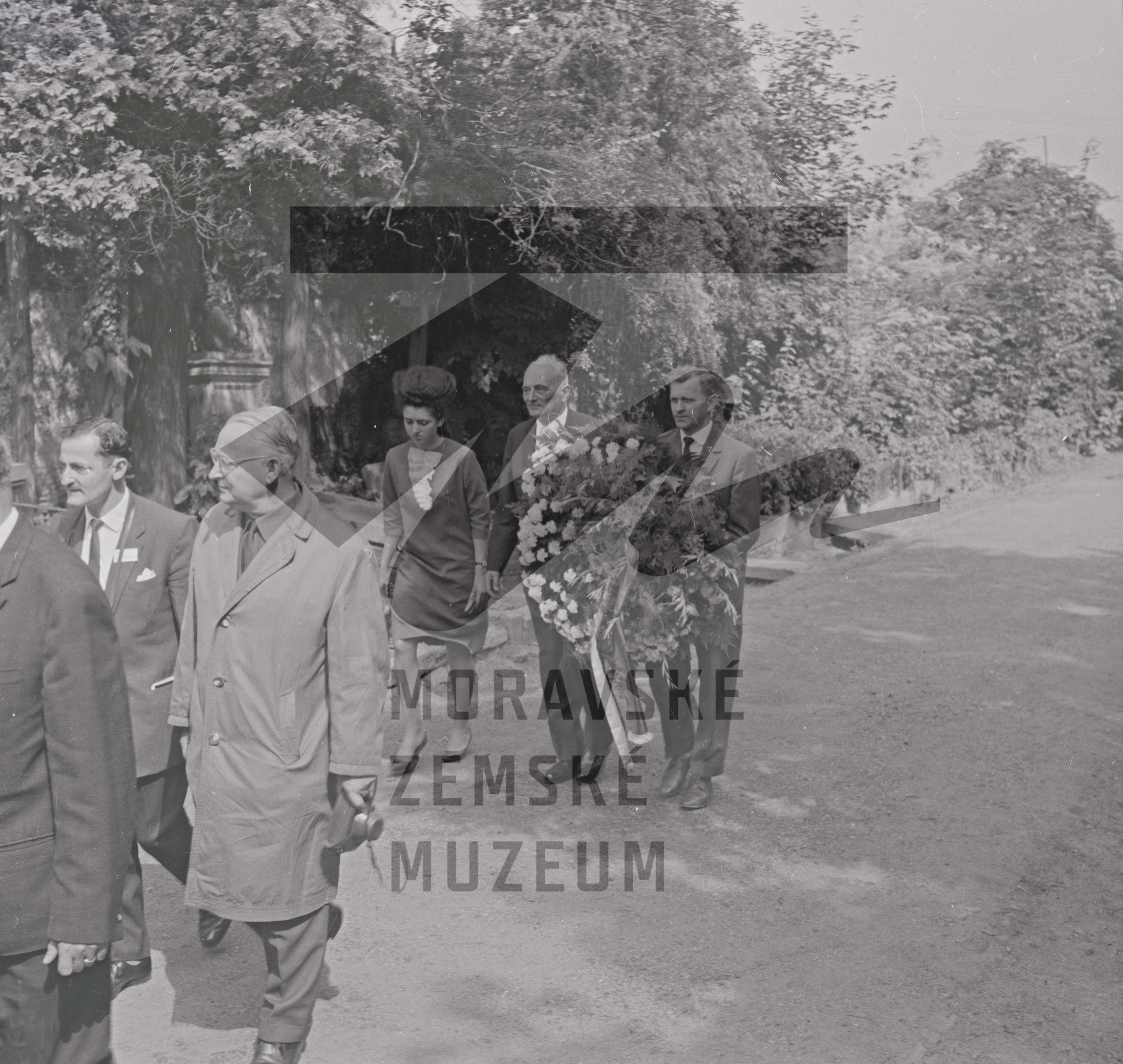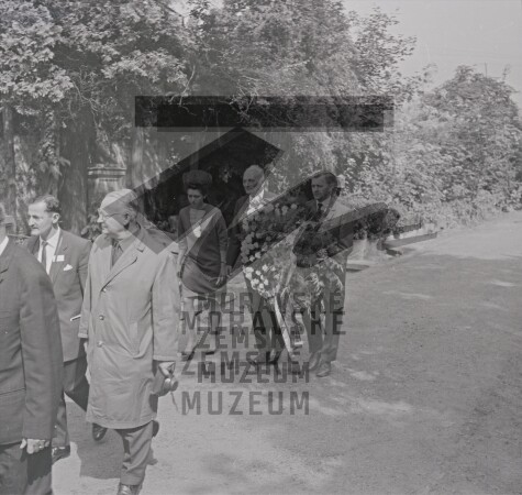 Mendelovo symposium 1965 v Brně – kladení věnce na Mendelův hrob.