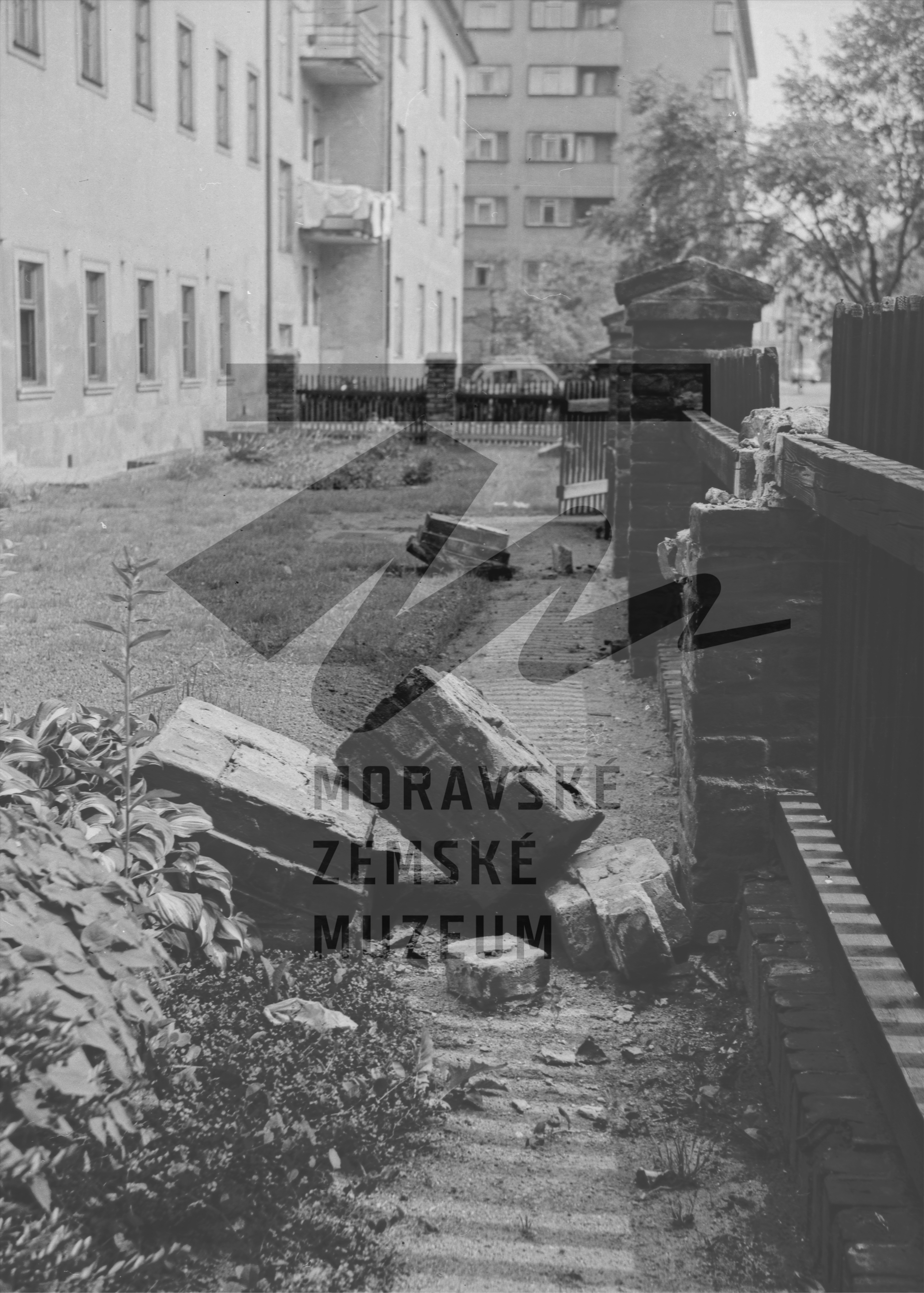 Mendelova zahrádka zničená chuligány, květen 1969.