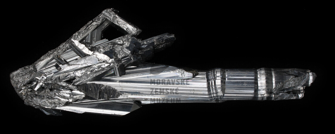 Antimonit, důl Ichinokawa, Japonsko, velikost vzorku 20 x 7 cm, foto J. Cága