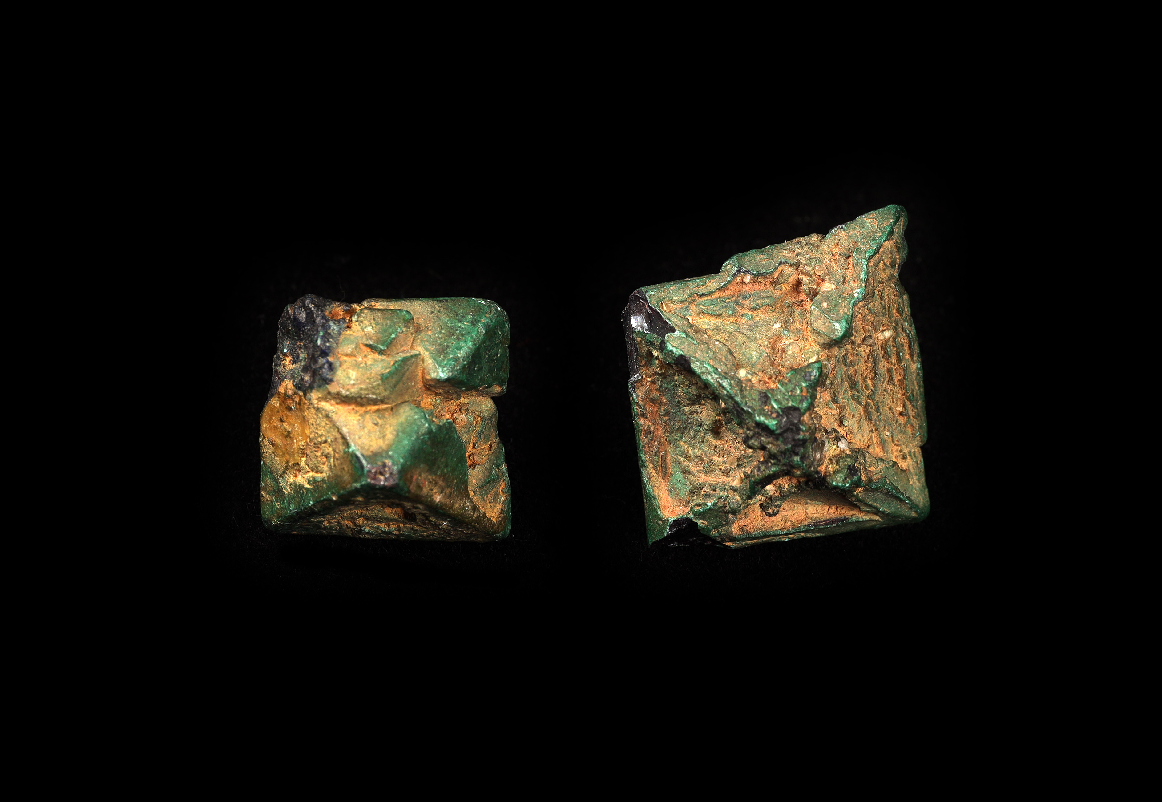 Kuprit, malachit, Chessy u Lyonu-Francie, vel. do 3 cm, foto J. Cága